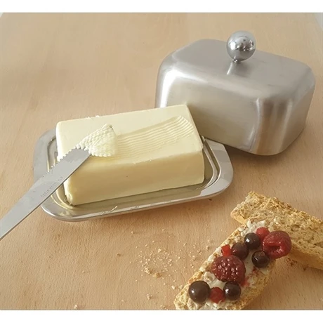 Pour conserver et déguster votre beurre au quotidien, le beurrier double paroi isotherme vous sera utile en toutes situations ! Grâce à sa double paroi, gardez votre beurre frais et dur plus longtemps. En inox 18/0, ce beurrier disposant d’une base et d’un couvercle sera tout aussi utile pour présenter joliment que servir aisément. La paroi intérieure du couvercle est en inox mat.