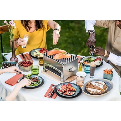 Créez un moment convivial grâce au braséro avec kit reblochonade Louis Tellier et ses performances de haute qualité. Conçu en acier inoxydable 18/10, il ne rouille pas, résiste à de très hautes températures sans problème. Pour sa grille, elle est en inox poli, ne se déforme pas et est dotée de propriétés antiadhérentes. Pensé pour être opérationnel le plus rapidement possible, lancez la chauffe via le foyer amovible à charbon de bois qui peut également être utilisé pour préchauffer la braise séparément, ou accélérez la montée en température avec un gel d’allumage dans le réceptacle prévu à cet effet. Fourni avec une tablette en hêtre massif, laissez-le sur ce socle qui isolera votre table de la chaleur.