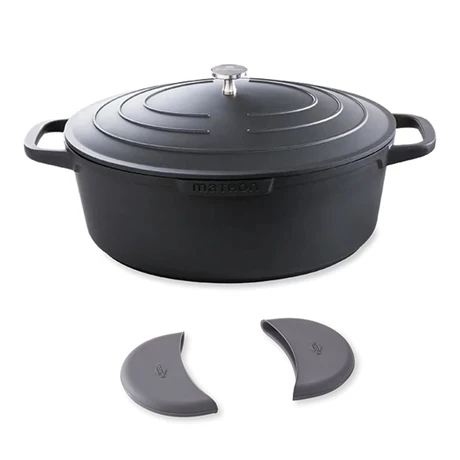 Soyez équipé comme un chef, avec ce lot « cocotte légère ovale en fonte d’aluminium Mathon et 2 maniques en silicone« . Ne vous brûlez plus les mains en attrapant votre cocotte, ce lot vous fournit tout le nécessaire pour cuisiner de bons plats mijotés en toute sécurité.