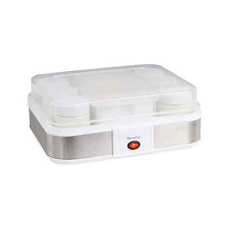 Les pots et couvercles inclus passent au lave-vaisselle. Les pots sont en verre et ont une contenance de 0,21 L et le bac central avec égouttoir pour fromage blanc de 1,2 L. les couvercles sont vissables pour fermer hermétiquement vos pots et les conserver plus longtemps.