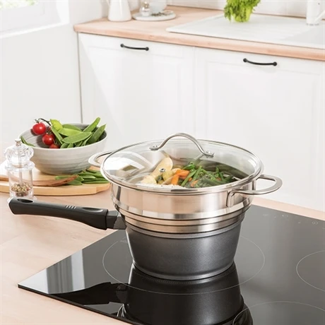 Pratique, il s’adapte sur les faitouts, casseroles et sauteuses de 20, 22 et 24 cm de diamètre.
