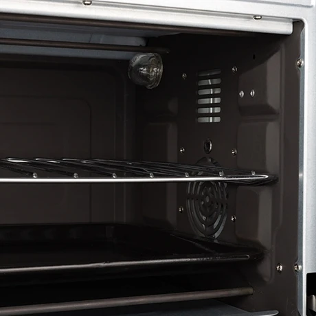 Cuisez tout type d’aliments avec le four à convection 32 L Tristar. Grâce à sa porte vitrée, surveillez la cuisson de vos préparations sans ouvrir la porte. L’entretien vous sera facilité avec les parois autonettoyantes du four. Il est fourni avec tous ses accessoires : lèchefrite, grille, plateau avec poignées et une rôtisserie pour concocter de délicieux poulets rôtis.